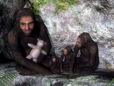 Halo 3 So during the mission Sierra 117, you can find a rather peculiar sight of strange monkey/cavemen with strange faces living in a cave. They are almost adorable, like a family with a teddy bear and all.. Bit odd though…