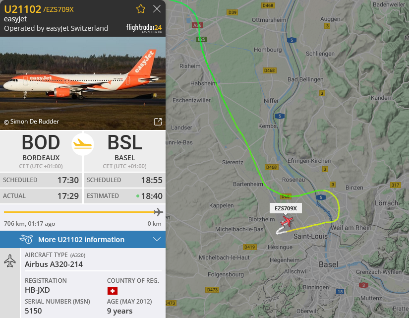 #easyjet Flug#U21102 von#BOD ist am#BLS auf der Querpiste#Rwy25 gelandet