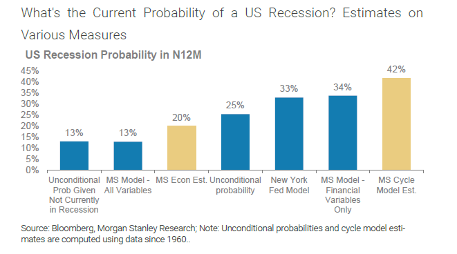 Interesting graph from Morgan Stanley. Recession probabilities by different measures.