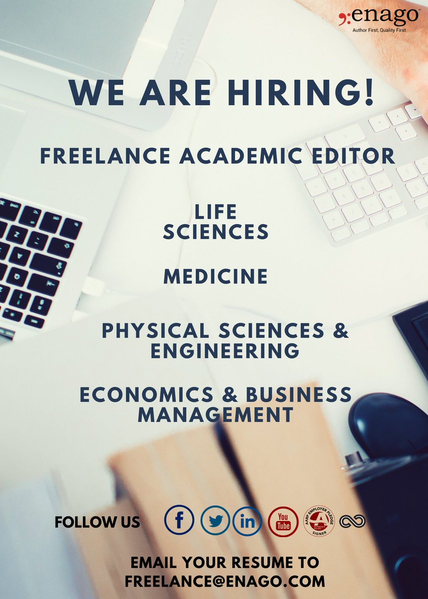 #Expert#Editing#Team! Apply here: https://lnkd.in/f-z_GGN or email us your resume on freelance@enago.com#editors#academics#joinusnow#hiring#engineering#academicpublishing#wearehiring#medicine#lifesciences#physicalscience#economicspic.twitter.com/3BIQekUa65