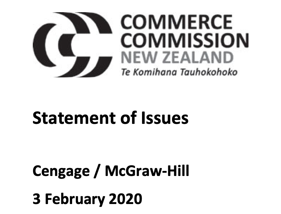 Cengage-MHE Merger Update: "Statement of Issues" Released by New Zealand Commerce Commission; Review Extended. https://buff.ly/393s7q3