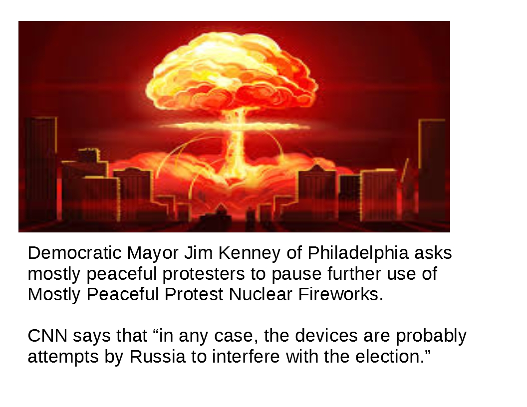 #CNN to stop accusing them of everything. "It's making our military nervous", he said. "Also we think the Mostly Peaceful Protest Nuclear Fireworks are in violation of several treaties".#ElectionInterference#Philadelphiapic.twitter.com/KpNRMN8fJg