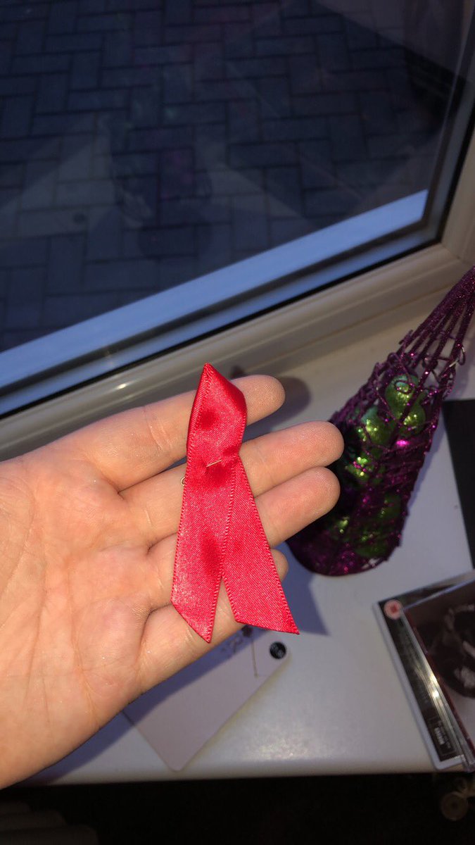 today I donated to an aids charity and got a cute little ribbon. If any of you get the chance please donate so we can