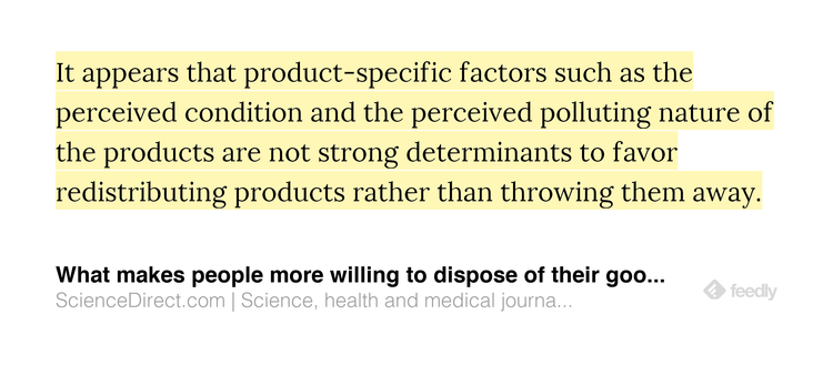 Social rather than environmental factors influence people's willingness to dispose of their goods rather than throwing them away - a view from science. https://www.sciencedirect.com/science/article/pii/S0921344920300045 …