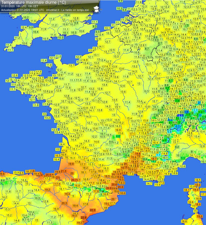 Il a fait près de 22°C dans le sud ce vendredi 31 janvier. Sur plusieurs stations, nous étions à moins de 2°C des records mensuels. En