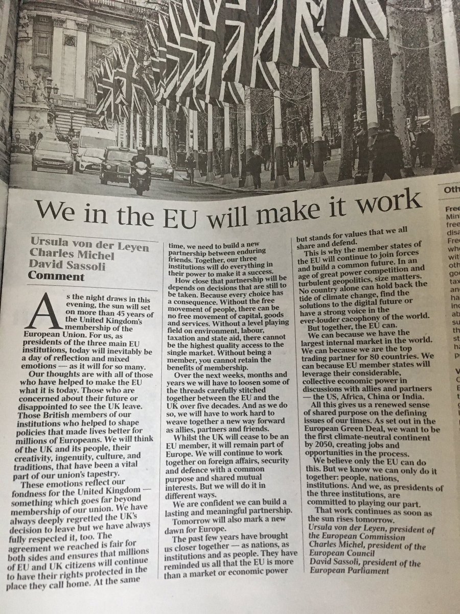 Brilliant Op-ed by the EU’s top triumvirate: ‘No country alone can hold back the tide of climate change, find the solutions to the digital future or have a strong voice in the ever-louder cacophony of the world’.