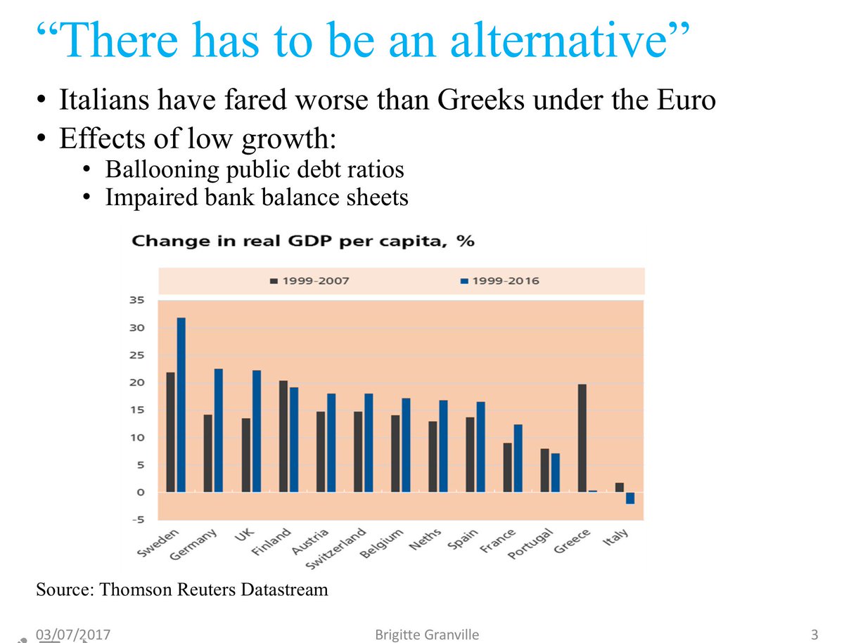 #Italy debt conference: Italians have fared worse than Greeks under the#Euro. pic.twitter.com/eAERUaCfvv