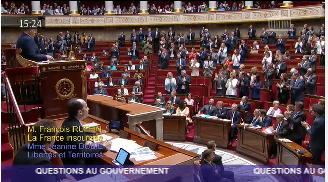 #DirectAN#QAG Quand@Francois_Ruffin en appelle à la mobilisation pour le#ReferendumADP @EPhilippePM ne trouve rien d'autre à répondre que féliciter la victoire des fascistes aux#Europeennes2019. Et les godillots@LaREM_AN se lèvent & applaudissent#RN#Macronie#Tartuffes