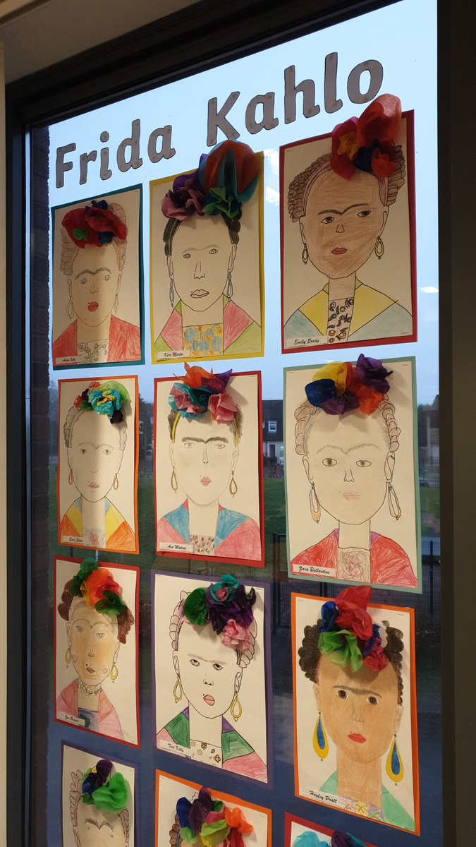 P6 have been learning about Frida Kahlo and her famous self-portraits. We used coloured pencil and tissue paper to recreate her look!