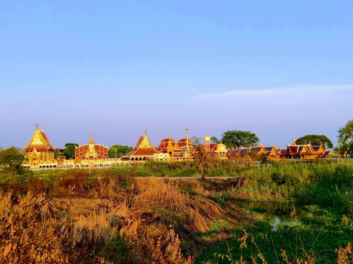 An offbeat temple, remotely located from the center of Ayutthaya Province surrounded by rice fields in the middle of no where, is distantly sparkling when late afternoon light hits its whole complex.