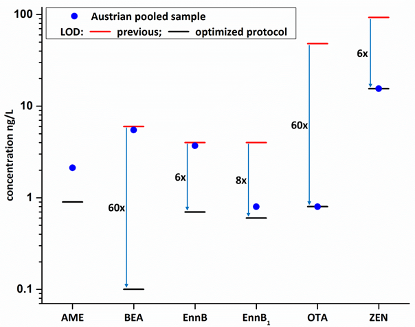 Combing a new instrument + improved sample prep means up to 60x lower detection limits. Now for some relevant food toxins in the pg/L range. Great job, Dominik. https://doi.org/10.26434/chemrxiv.11763555.v1 … https://pubs.acs.org/doi/10.1021/acs.analchem.8b04576 …