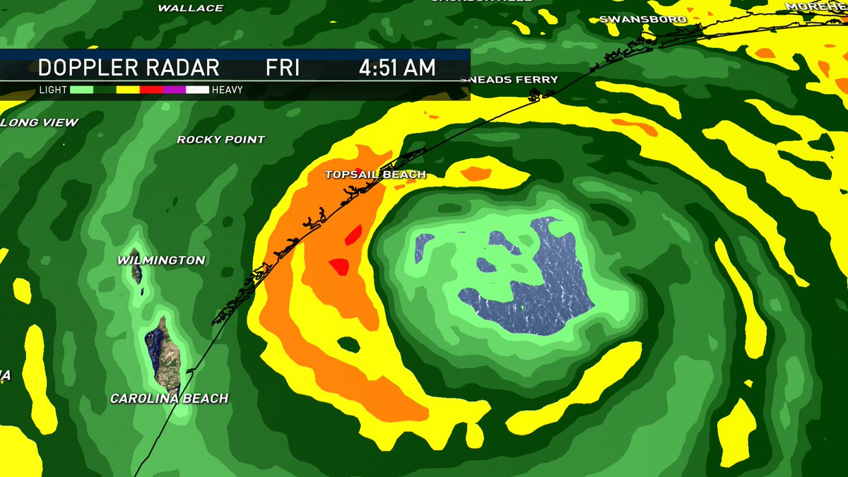 #Eyewall of CAT. I#Florence battering the shores of Topsail Beach, Surf City, Wrightsville Beach and Carolina Beach early this Friday A.M., 14.Sep.2018.#HurricaneFlorence#HurricaneWarning#StormSurge#NCwx#SCwx#COwx#Eye#Wilmington#NorthCarolinapic.twitter.com/CyZLhNjLpy -