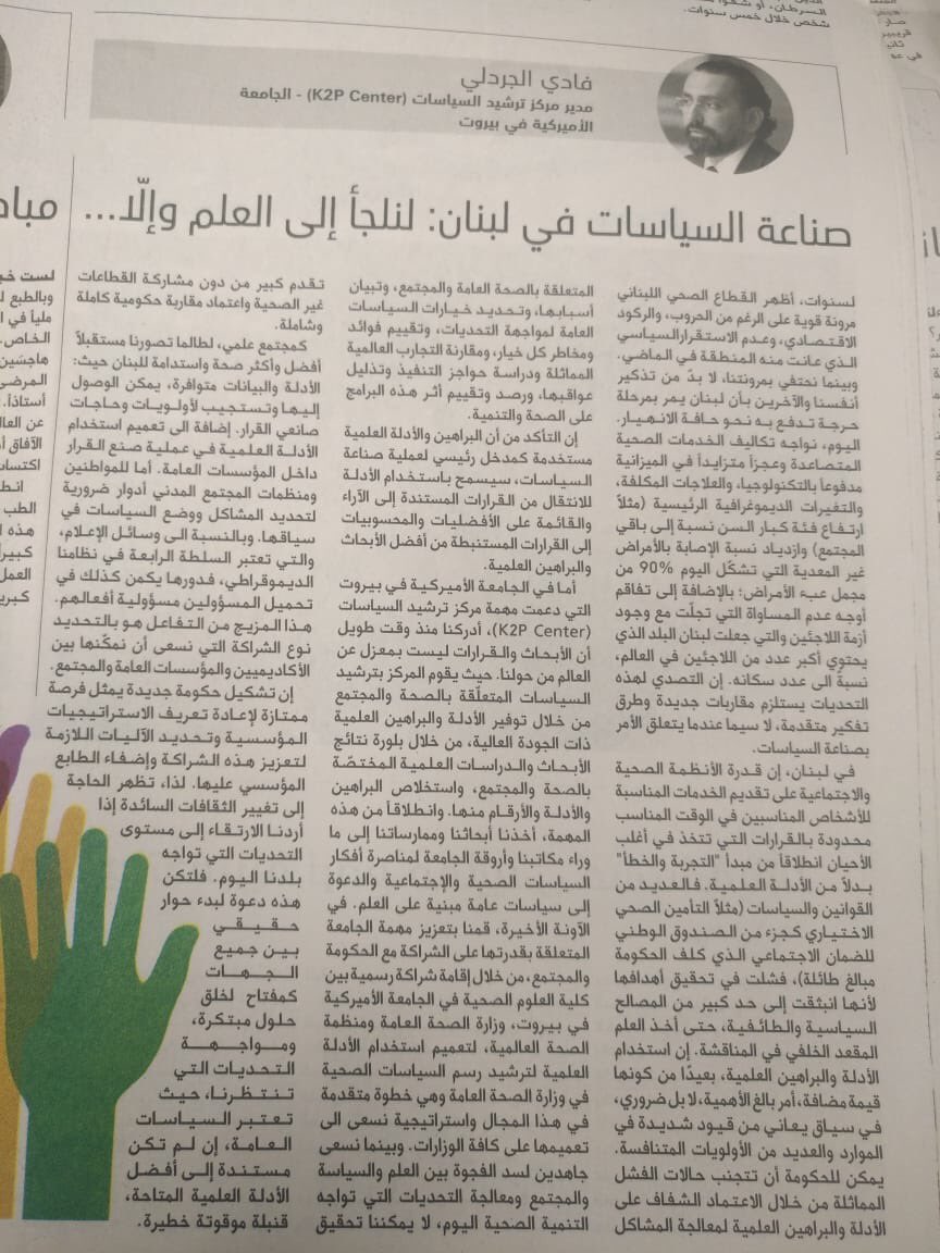 #FacultyMembers take on#PublicHealth with a#comprehensive view on#politics#prevention#HealthSystem#refugees#EvidenceBasedPolicy & much more in this special edition of@Annahar#النهار_جامعة#ProudofFHS#StayConnected#GetInvolved#MakeAnImpact link2articles below pic.twitter.com/rBk9Chw61T
