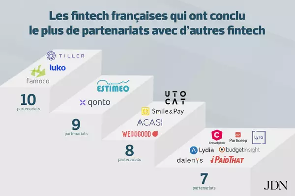 @JDNebusiness parmi les Fintech françaises qui comptent le plus de partenariats avec d'autres#Fintech tricolores, aux côtés de@TillerFrance@getluko@famoco@getqonto