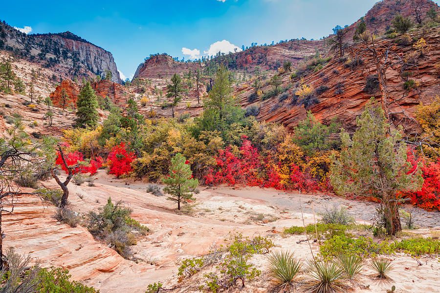 Red Leaves At Zion National Park by John M Bailey http://johnbaileyphotoart.com/featured/red-leaves-at-zion-national-park-john-bailey.html … Fall colors can be found at the most unlikeliest places. To see more of my Fall Colors images go to: http://johnbaileyphotoart.com/collections/fall+colors+across+america …