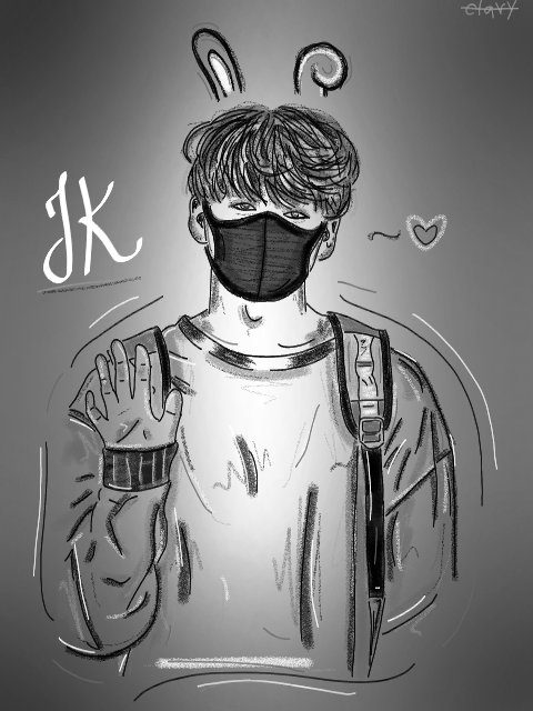 Решила нарисовать Чонгука по памяти. Поняла, что у меня хреновая память. Успокаивает лишь то, что получилось не так плохо, как обычно. Хоть немного похож?