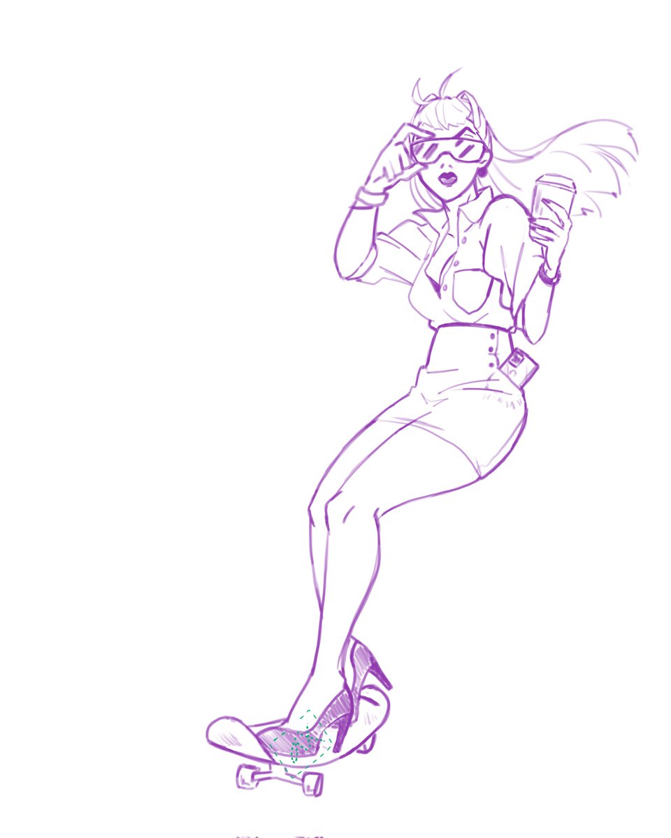 Just another ordinary day when Eve arrived at the office on Akali's skateboard.