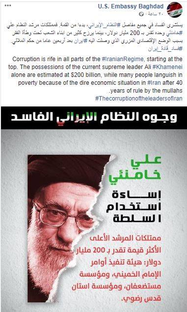 #Fatah Coalition has slammed the US Embassy in Baghdad for this Facebook post criticising@khamenei_ir. The coalition said that it is strongly against embassies using their platform to criticise other states and religious figures.pic.twitter.com/v4bVNOeikk