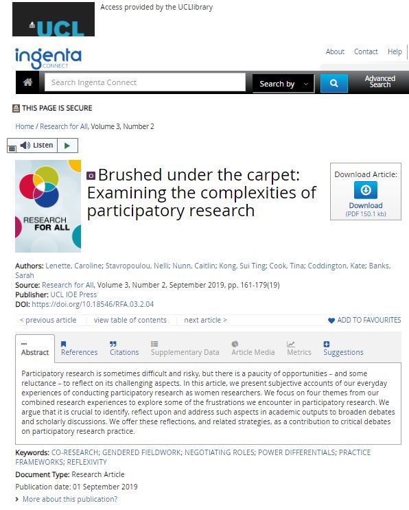 @CarolineLenette & colleagues share their experiences, frustrations & strategies involved in participatory research. D/L#openaccess article here!#fieldwork#participatoryresearch http://ow.ly/lWNR30qdAwi pic.twitter.com/XMe8OXxFHc