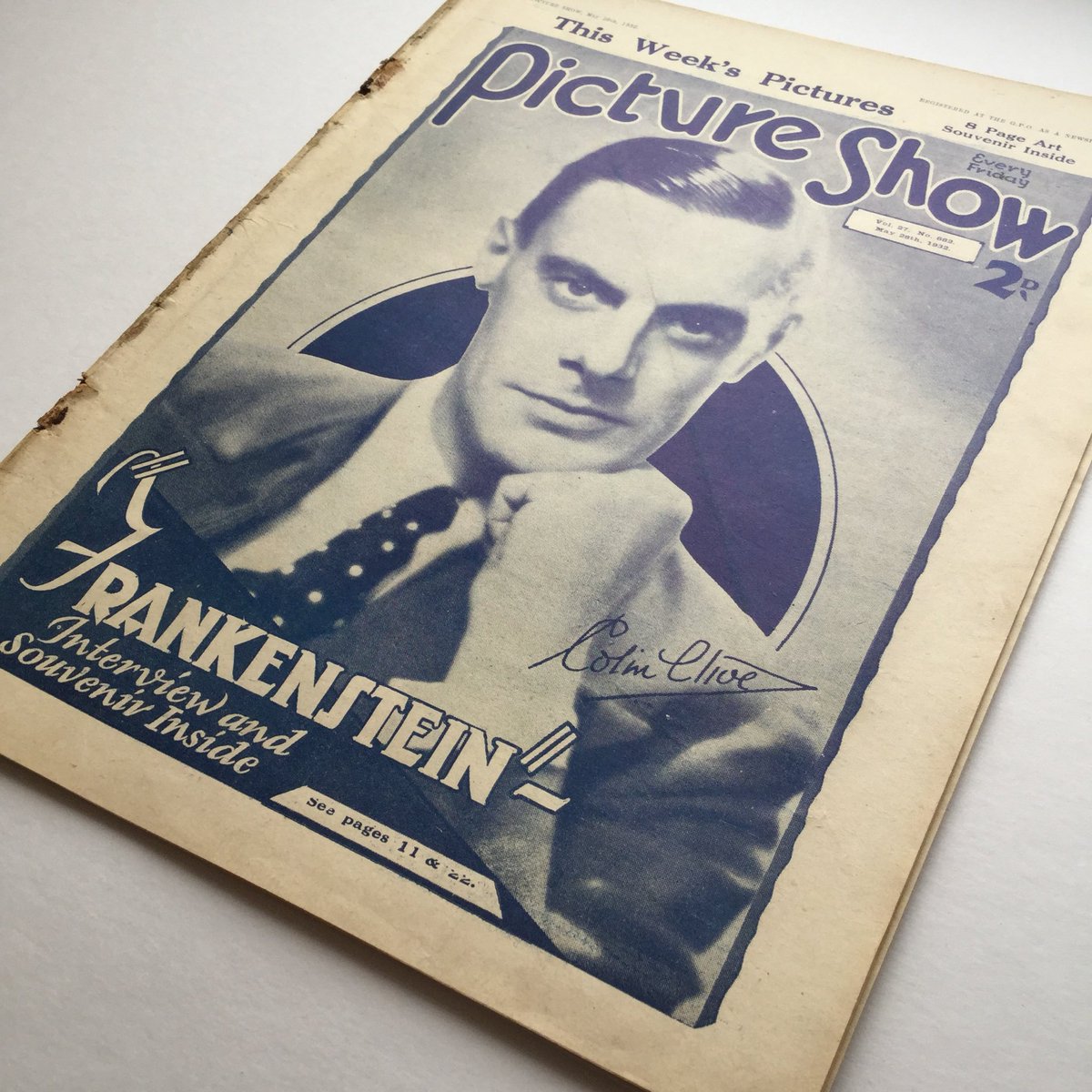This just come in, 1932 Copy of Picture Show with Frankenstein Preview and Souvenir Pullout. Great Cover photo of a moody Colin Clive.