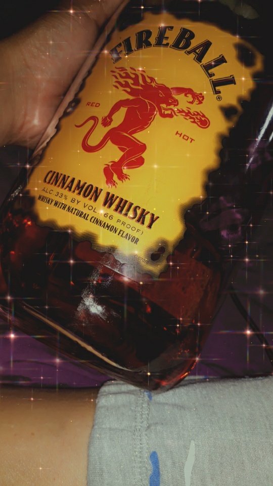 Fireball Whisky with Natural Cinnamon Flavor; 33% Alc/Vol; Sazerac Co., New Orleans, LA • Must be 21 to follow and engage#IgniteTheNite • fireballwhisky.com/bartender