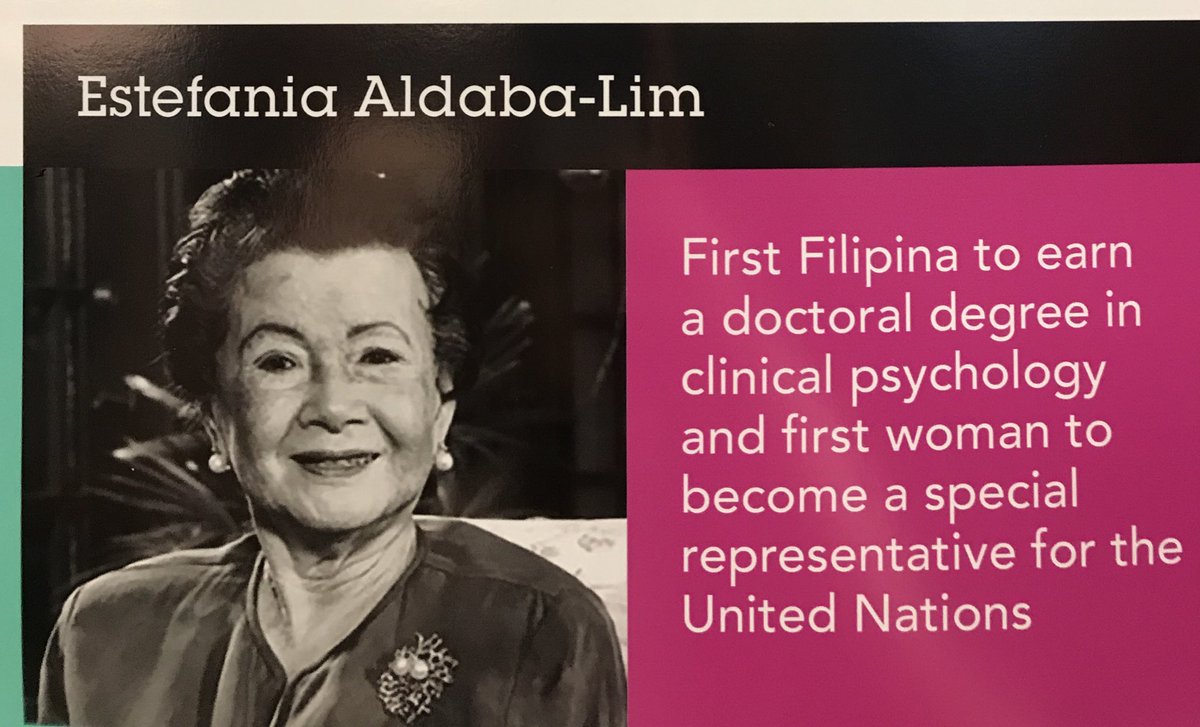 #IamPsychedTour#WomensProgramsOffice@APA#WomenFirsts -> Dr. Estefania Aldaba-Lim,#first Filipina to earn a doctoral degree in clinical psychology and#first woman to become a special representative for the United Nations.#WCPISTEAMFair@APAPublicIntpic.twitter.com/kVySdTIj5N