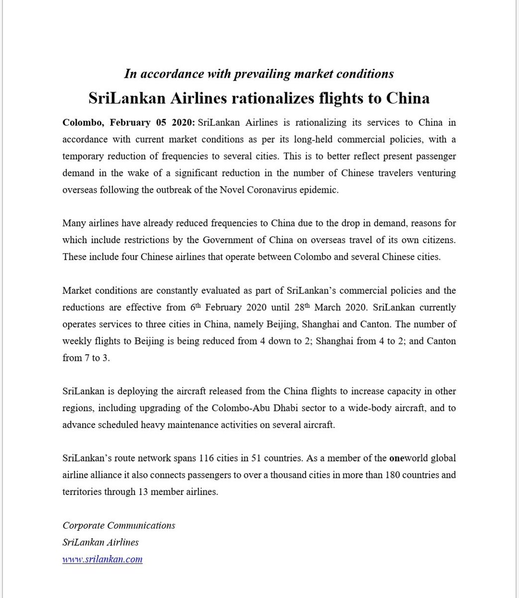 #srilanka national career@flysrilankan also decided to rationalize#flights to#china.pic.twitter.com/FBG1Pr5x2q