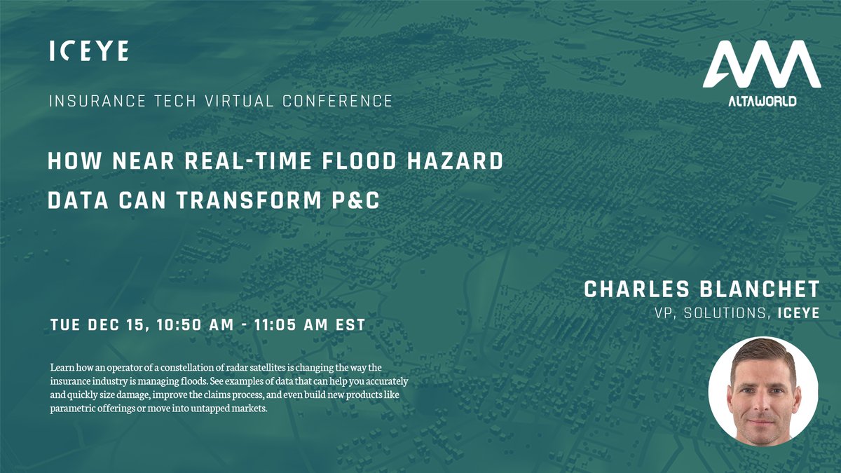 Register to hear Charles Blanchet, VP of Solutions, ICEYE, speak about near real-time flood hazard data for