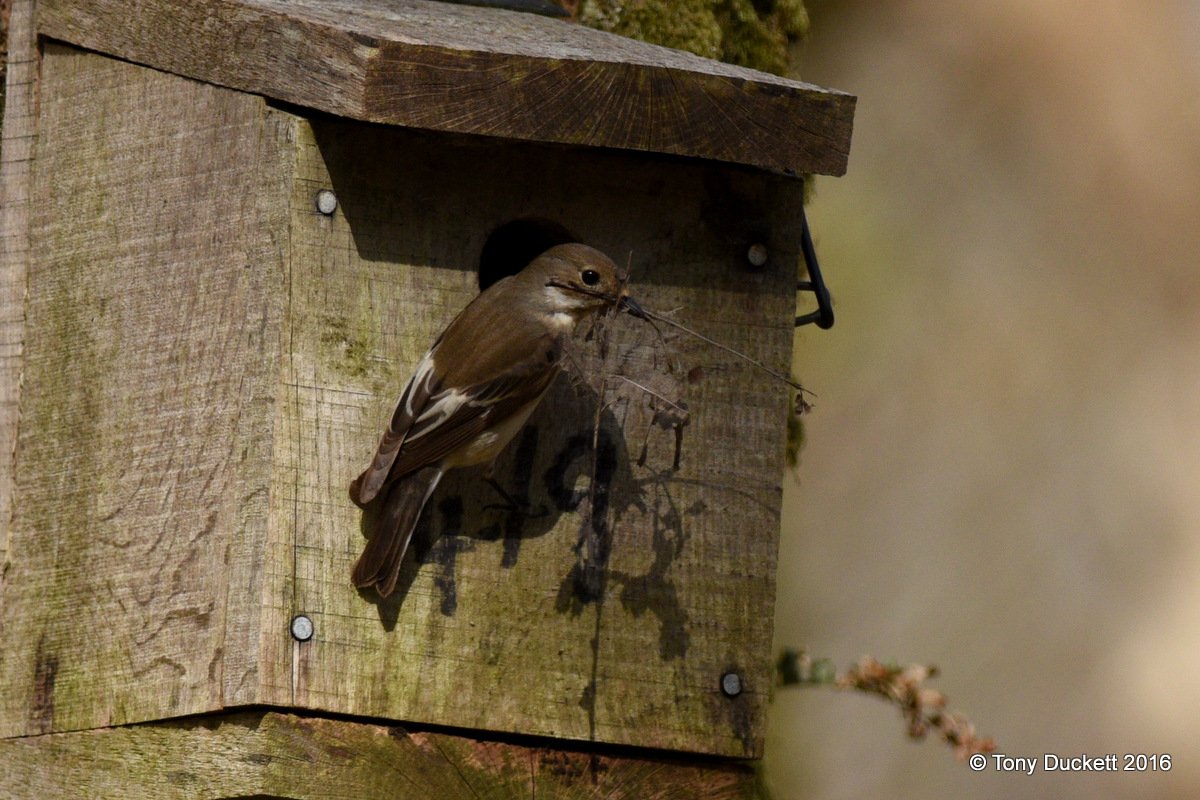 The male Pied Fly's visited the nes tboxes but the females appeared to do most of the nest building.