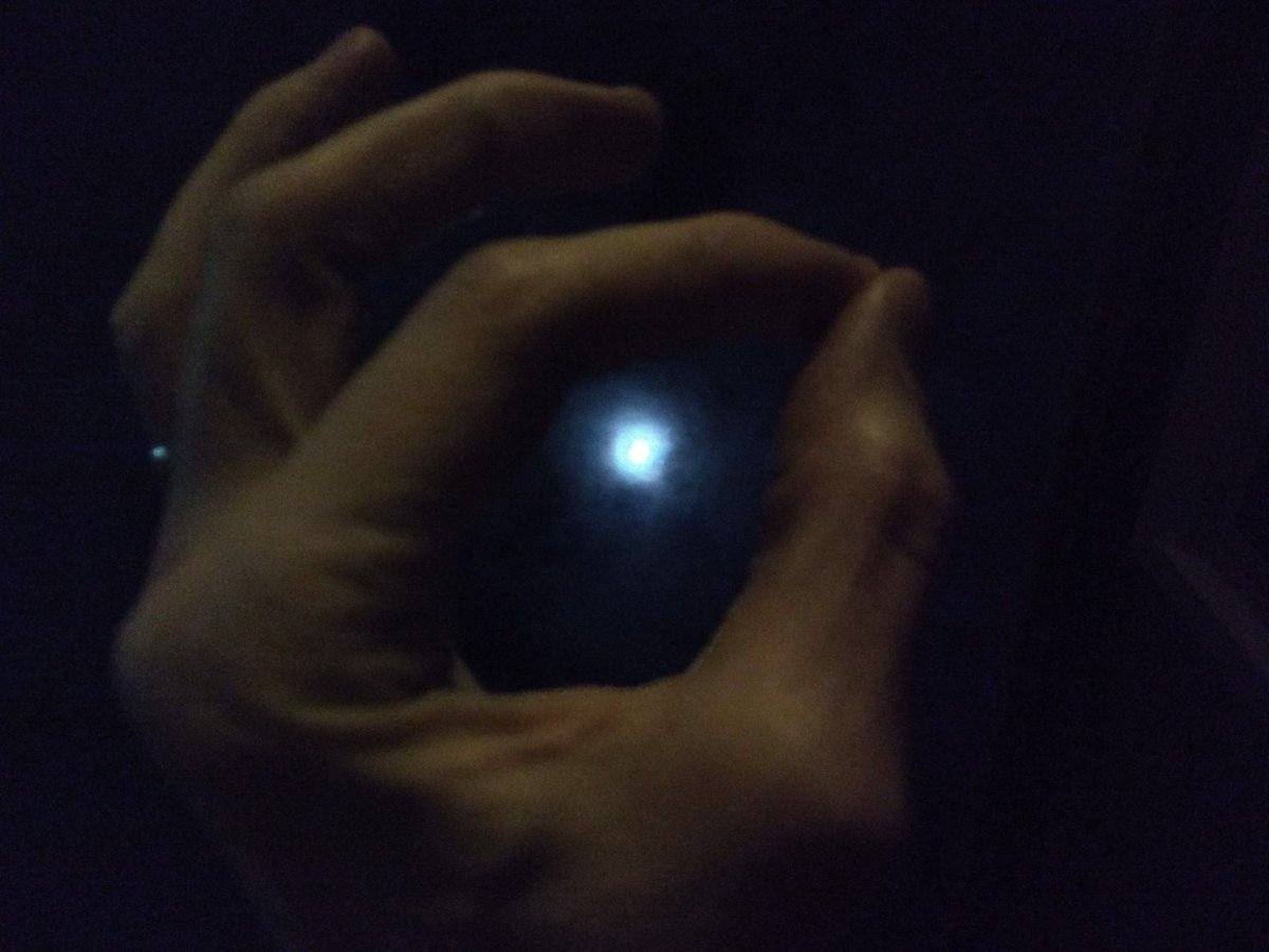 In my hand. Glass sphere and lava lamp.