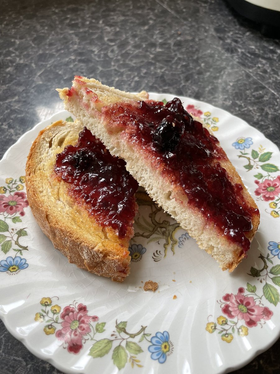 This isn’t just any toast and jam. It’s home made bread home made Blackcurrant and Apple Jam.
