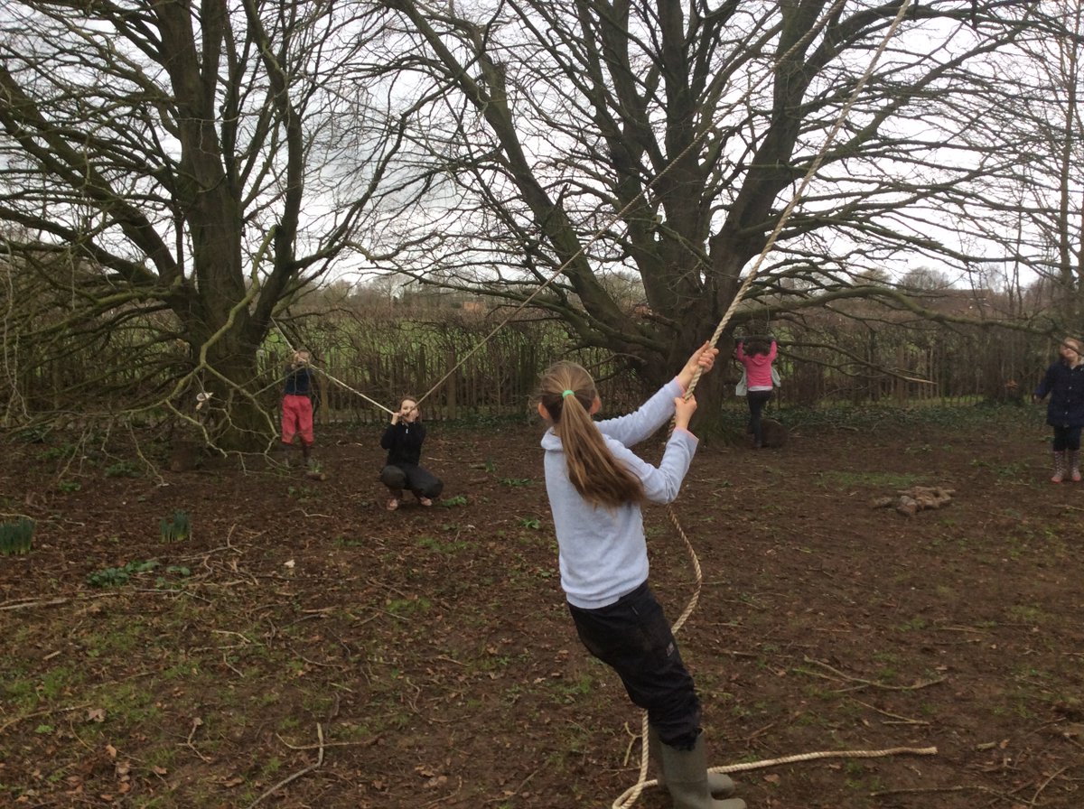 @FreemanCPSchool girls tried to make a zip line at Forest School. There was also animal yoga, a tug of war & Charlie found a bone! Some of the bird feeders the children made last week were empty which the children were very excited about. (tweet 2 of 2)#forestschool pic.twitter.com/ULohJjQ0W8