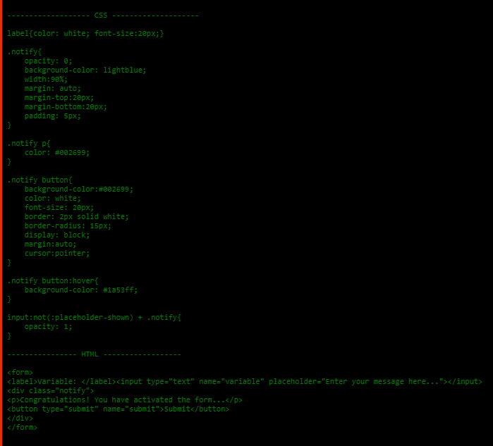 Check out my new tutorial to learn how to create a pop-up message when the user enters an input variable in a form in plain CSS