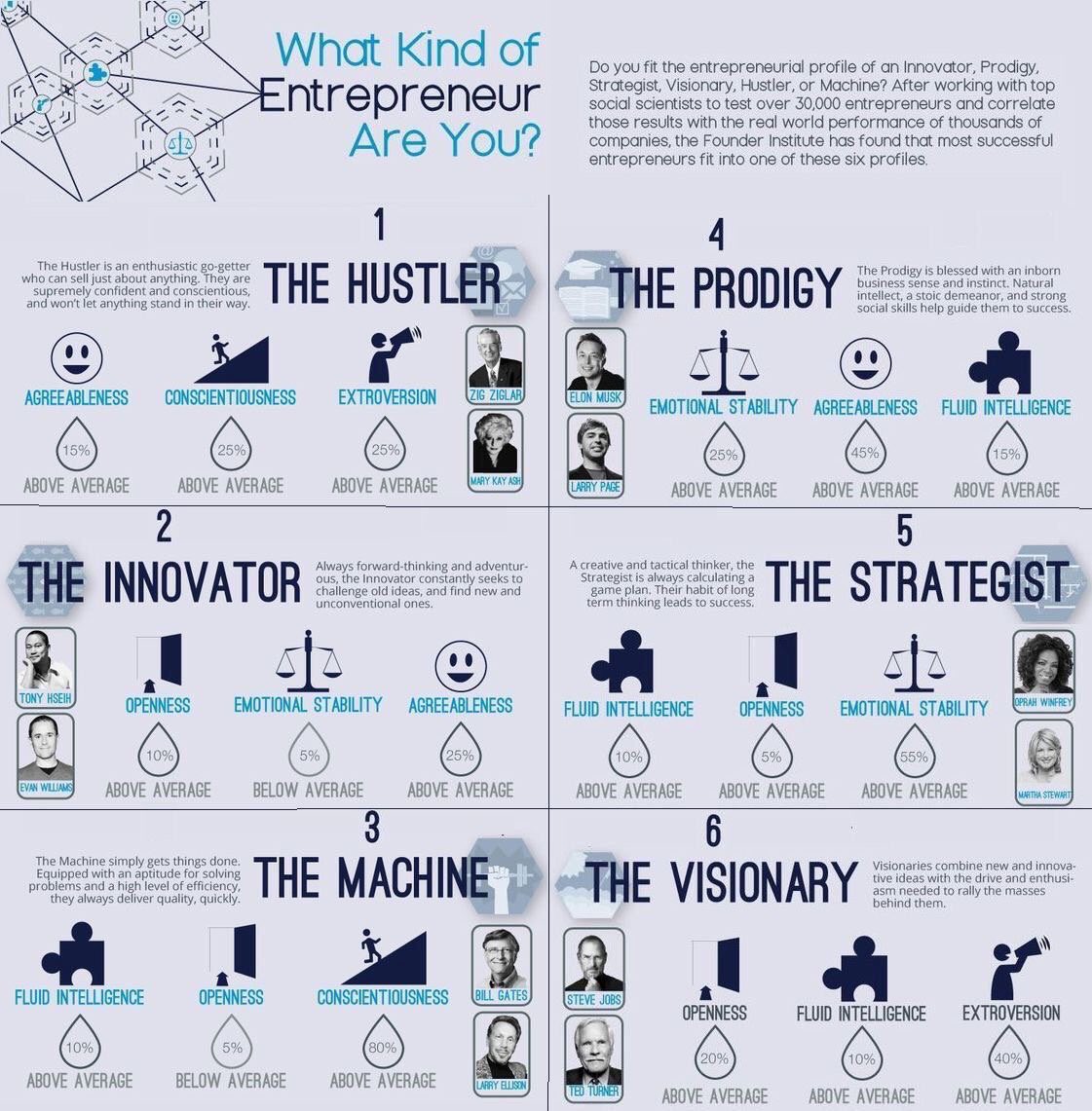 #entrepreneur are you?#ريادة_الأعمال 1) The Hustler (@garyvee) 2) The Prodigy (@elonmusk) 3) The Innovator (@Zappos) 4) The Strategist (@Oprah) 5) The Machine (@BillGates) 6) The Visionary (Steve Jobs)#Founders#Startups#CEO pic.twitter.com/3ttGA6eQGH