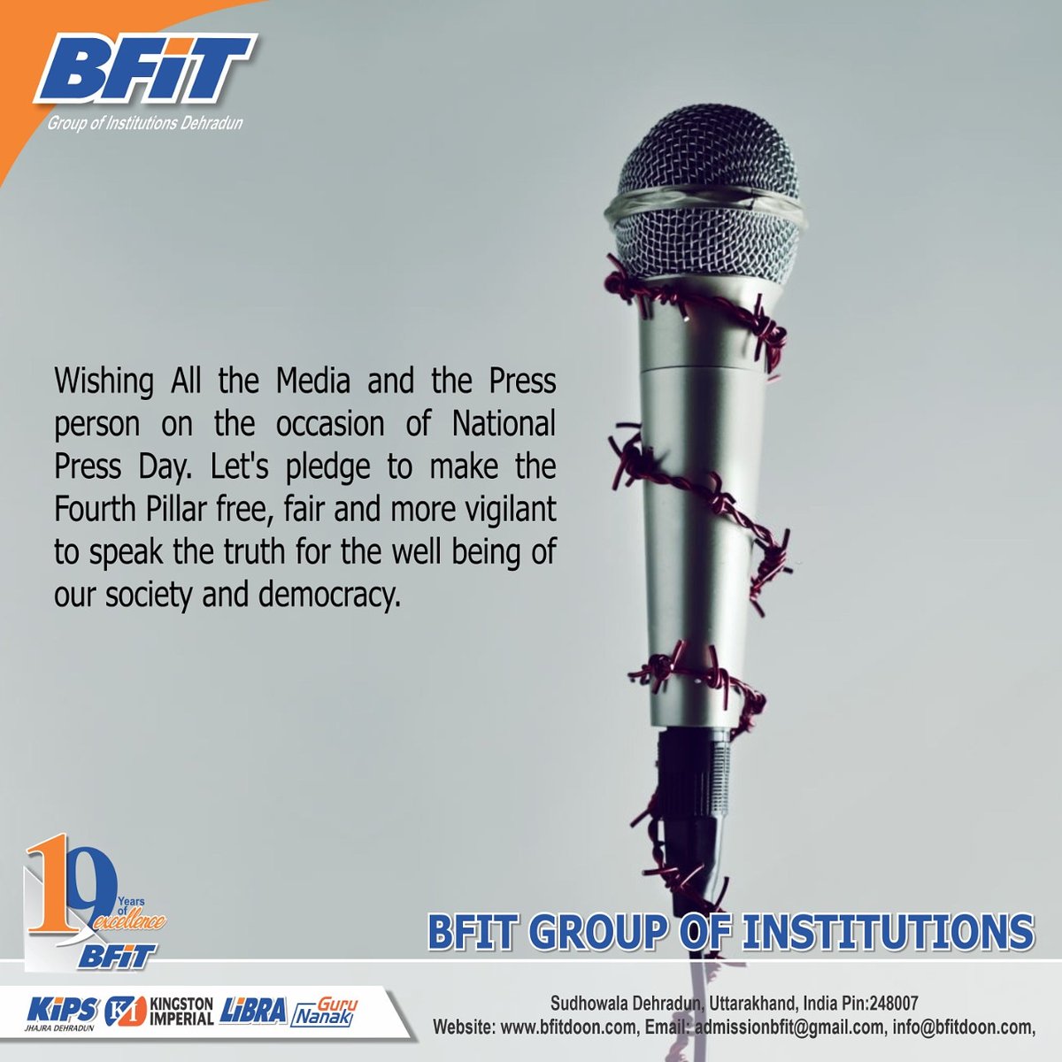 #nationalpressday#pressday#freedomofpress#journalism#media#importanceofmedia#pillar#democracy#bfit#bfitdoon#dehradunpic.twitter.com/ySgn5zFFIl