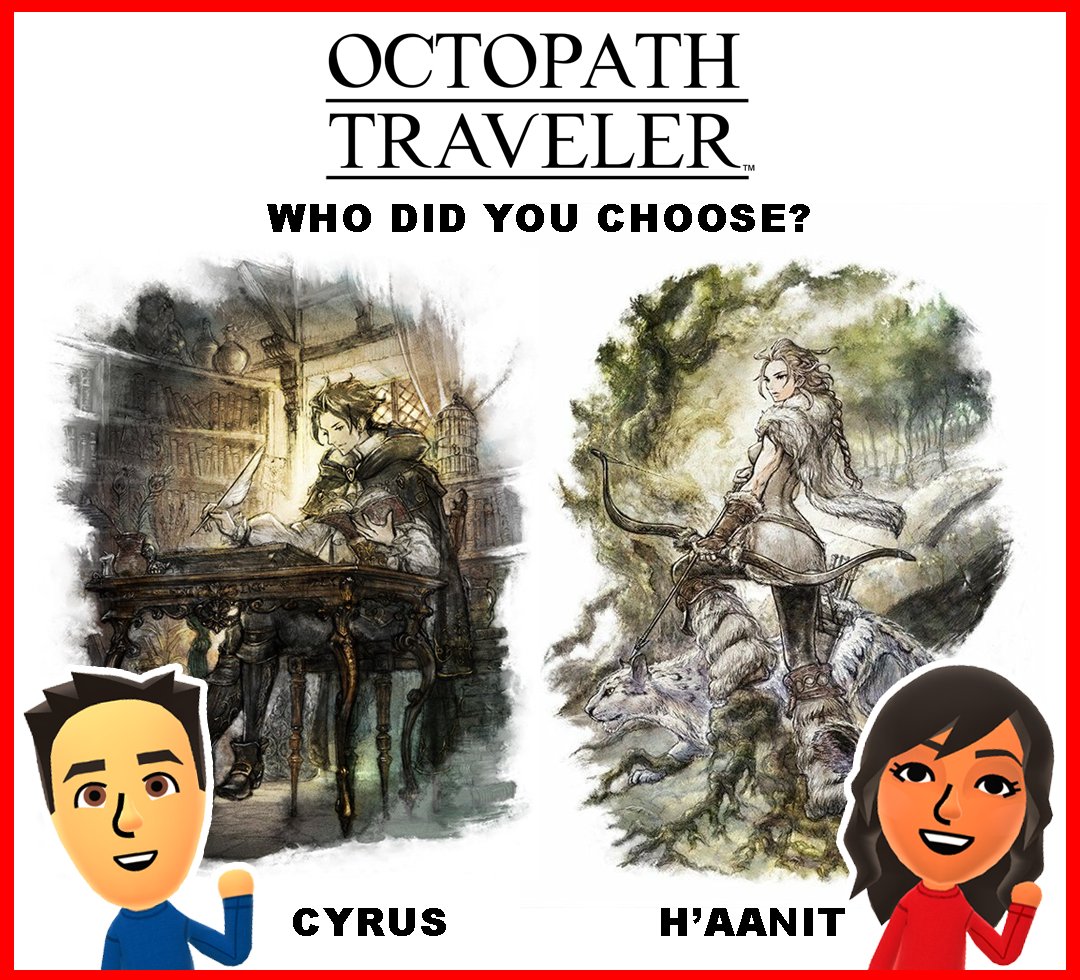 #OctopathTraveler!! The visuals, soundtrack and battles are just wonderful! Although we're both playing through the same game, our journeys are so different from each other! Whose story did you choose to play? Thank you@NintendoAmerica for the#FreeGame! pic.twitter.com/anLDcENHER
