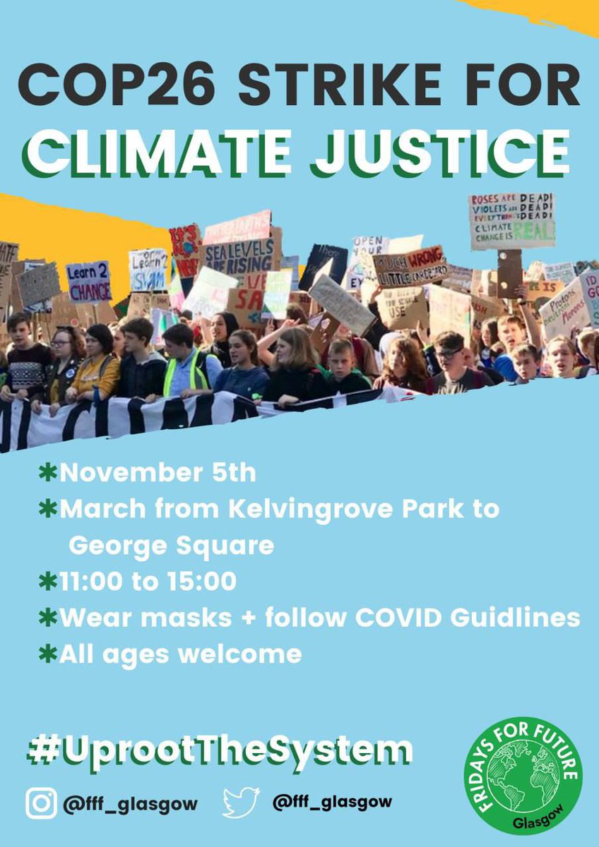 School strike for climate week 138 in Glasgow, Scotland! We have four weeks until the strike during COP26, join us at 11am at Kelvingrove Park!