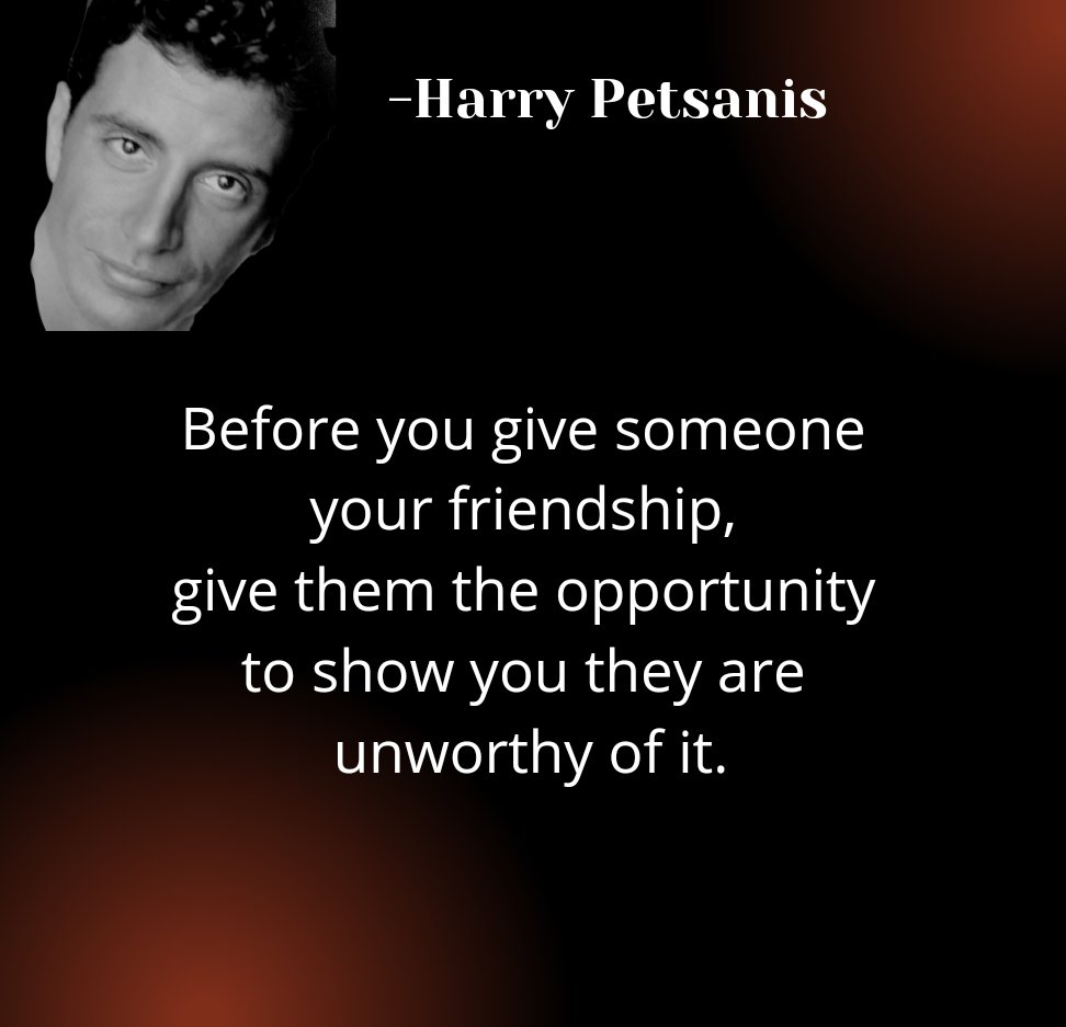 Before you give someone your friendship, give them the opportunity to show you they are unworthy of it. -Harry Petsanis