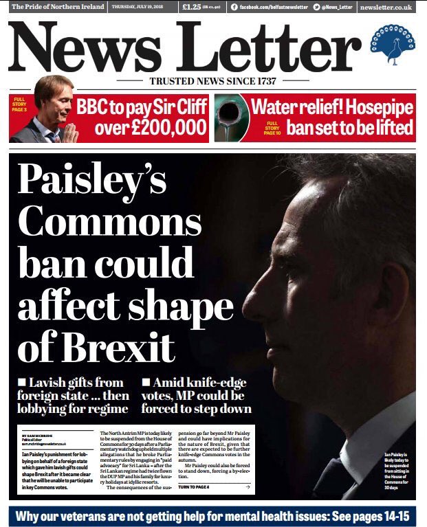 News Letter : Paisley’s Commons ban could affect shape of