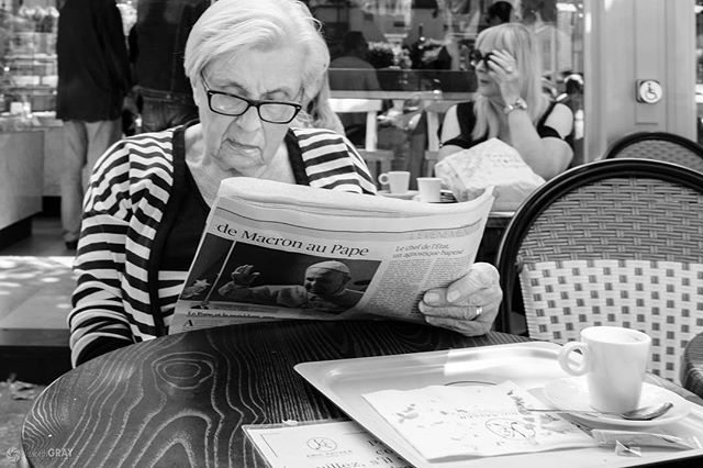 'de Macron au Pape'⠀ I am always looking for people reading newspapers. I saw this woman in Deauville, France.⠀ ⠀