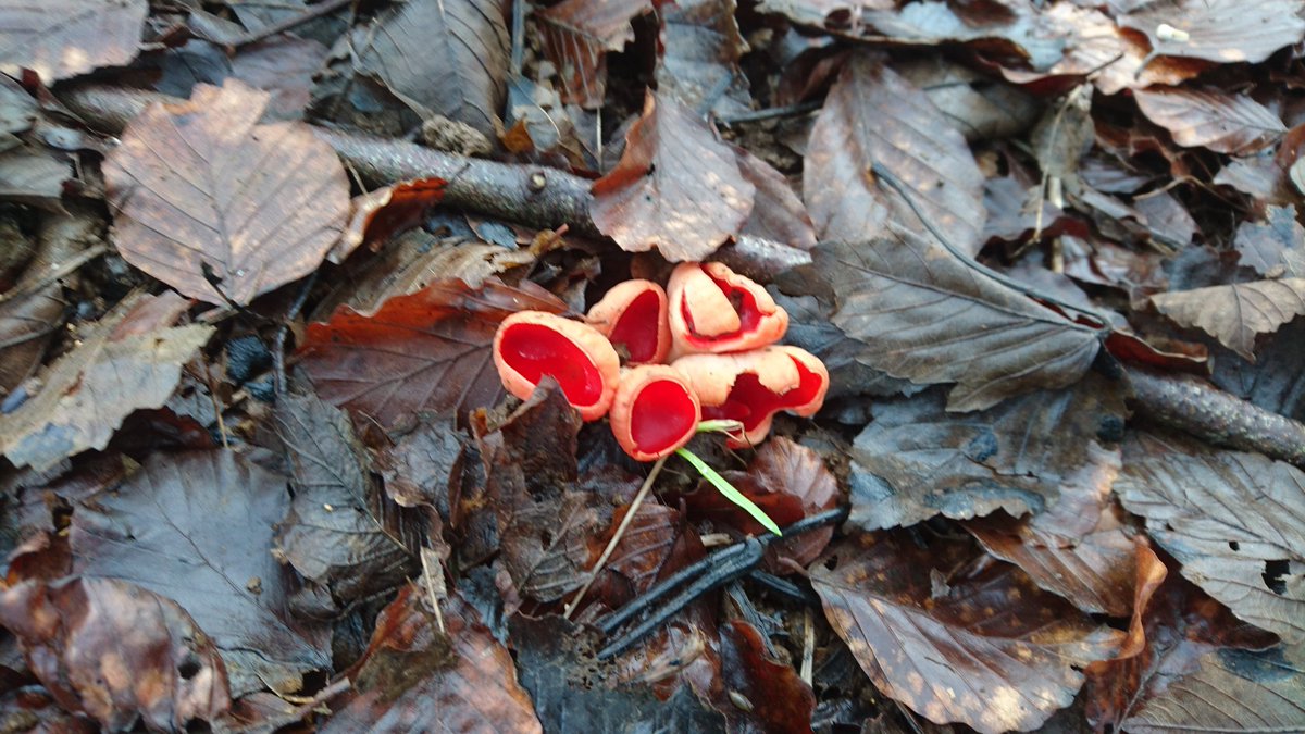 #fungi down by the river this afternoon. Alder cup (tiny!) and scarlet elf cups pic.twitter.com/sHlmSzBTSe