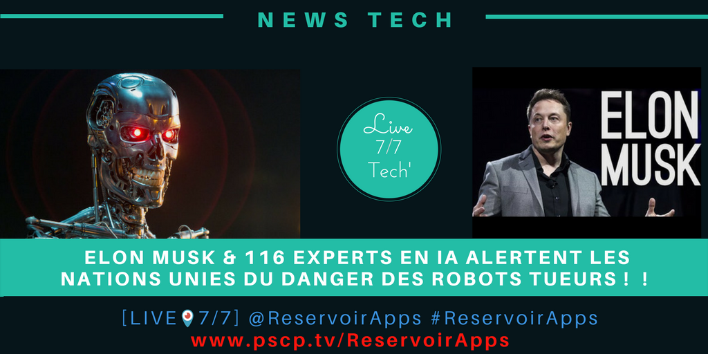 @elonmusk & 116 EXPERTS EN IA ALERTENT LES NATIONS UNIES DU DANGER DES#ROBOTS TUEURS ! Video https://www.pscp.tv/ReservoirApps/1PlKQYEQzrMKE …? INFOS#Tech#Futur pic.twitter.com/Ic6zDwmx81