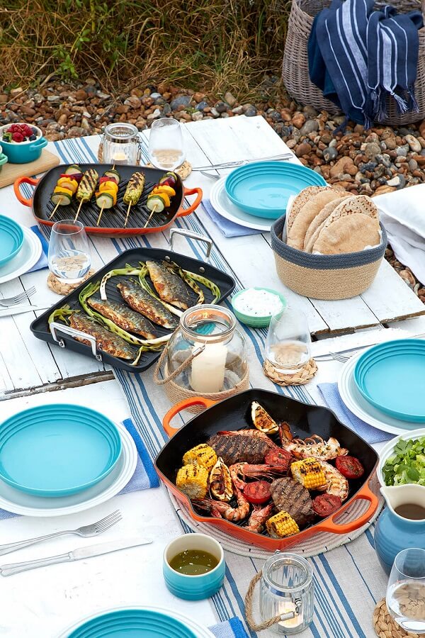 Leckeres mit den klassischen Grillstreifen gibts heute auch in einer Pfanne. Was aber auf keine Fall fehlen darf, ist das Geschirr, mit dem sich das Grillgut noch leckerer genießen lässt. https://lelife.de/2018/07/die-besten-grill-gadgets-und-must-haves-fuer-diesen-sommer/ … Bild: Le Creuset Grillpfannen