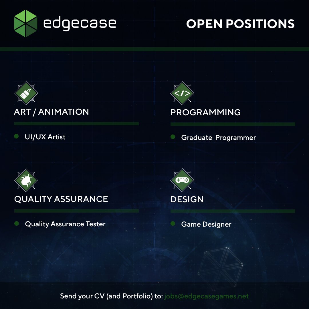 We had our new Technical Artist join today, but there are still opportunities waiting on the Capital Ship Edge Case Games. Please share around, our DM's are open!