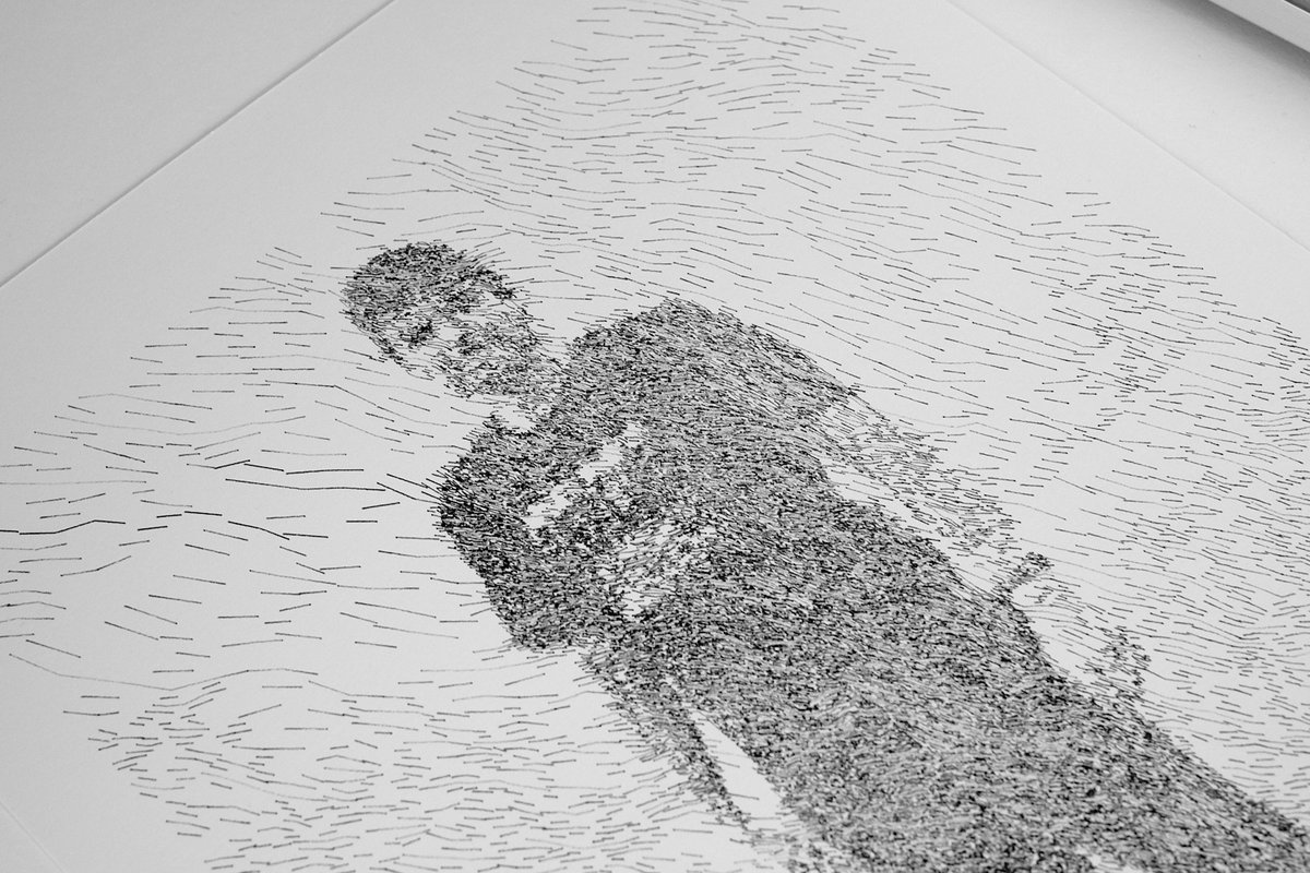 5/ I used a fiber laser to score lines into steel . Pattern designed in Grasshopper.