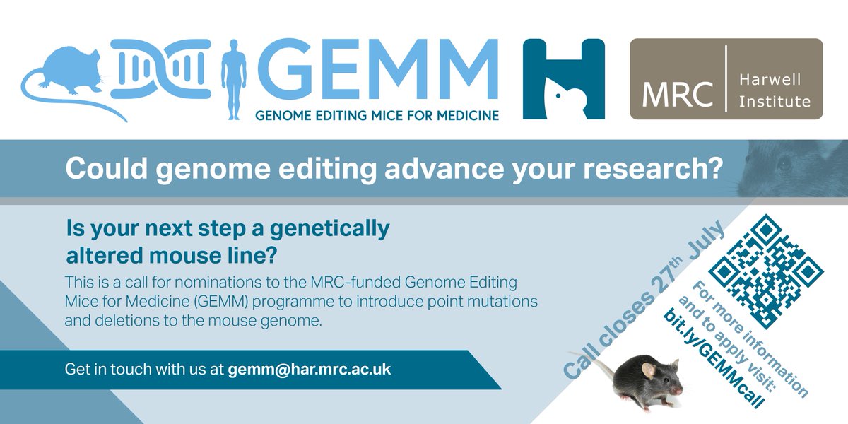 Don't forget to apply for Genome Editing Mice for Medicine, just over a week left to apply! http://bit.ly/GEMMcall