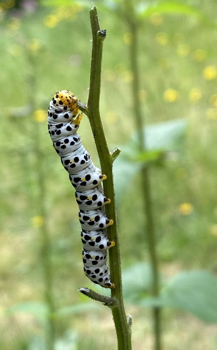 In mijn tuin volop helmkruidvlinderrupsen. Is zo