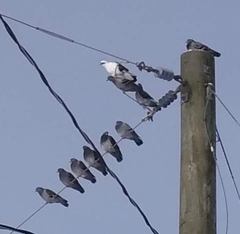 I think we have a new pigeon. I haven't seen the white one around here before.