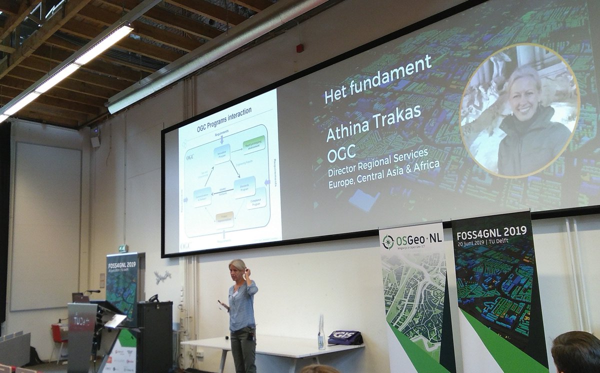 @trakasa from OGC keynoting at#FOSS4GNL , on@opengeospatial (OGC) and Geospatial Standards.#geonl#osgeopic.twitter.com/GCC8UH5Tv3