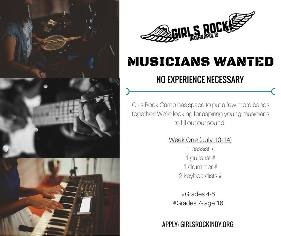 #MusiciansWanted! We have a few spots to fill for#GirlsRockCamp! Apply at http://GirlsRockIndy.org#summercamp#GirlsRock#GirlsRockIndypic.twitter.com/EaAjmJHxea